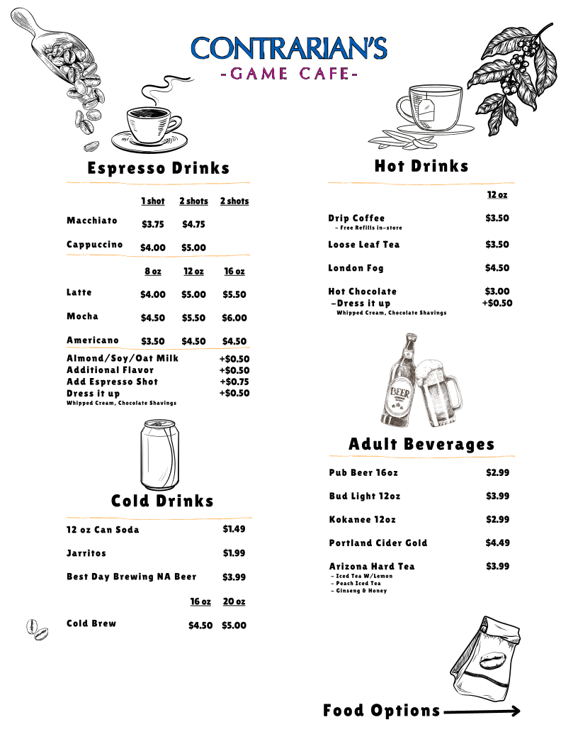 Whether you’re a seasoned gamer or new to the community, Contrarian's Game Cafe offers an inviting atmosphere full of laughter, camaraderie, and scrumptious snacks. Be sure to stop by, grab a drink, try your luck at their game selection, and enjoy some casual fun with friends or family. You might just find that this café is more than just a place to game; it’s a place to connect.